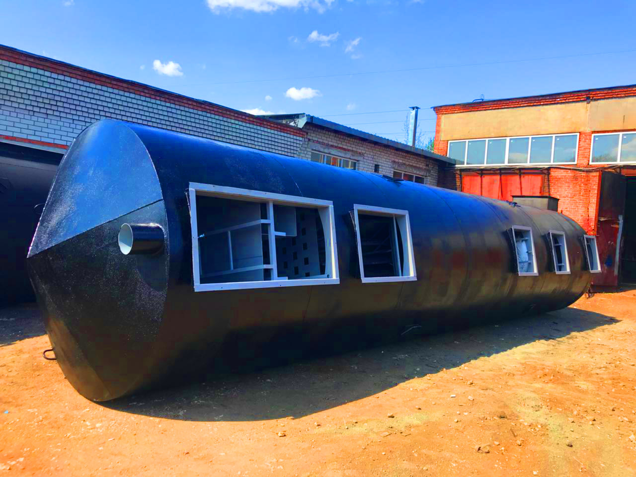 Габариты очистного сооружения: длина 5800 / диаметр 2400 / вес 3500 кг.